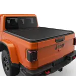 - Description: RollTrac Electric Retractable Tonneau Cover is weather-resistant, extremely secure, and easy to use. Seamlessly integrated with your vehicle's central locking system, this RollTrac automatically locks in sync with your truck and can be opened and closed with a push of the button on your production key fob. Power features include open/close anti-pinch feature to eliminate cargo damage or injuries and variable speed control. The aluminum cover is finished in a scratch-resistant, lightly textured matte black powder coat, includes a universal t-slot rail system and has a 700 lb weight rating. This cover fits Jeep Gladiator 2020-2024.