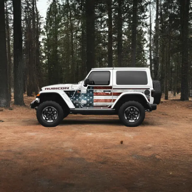 - Description: Sold by MEK Magnet, the Custom Removable Trail Armor is made of high-performance, thick magnet and ballistic resin coated with custom formulated nano-hold technology that strongly stick to the vehicle aluminum. Rated for all legal high-way speeds, durable, weather and fade-resistant, washable and reusable up to 200 times. Commitment-free – put them on, take them off whenever you want for dependable trail protection. Easy and fast installation and worry-free hold. Great protection for off-roading and everyday driving. The Patriot design is created to fit Jeep Wrangler (two-door).
