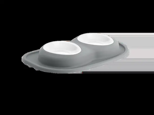 - Description: Sold by Competition Specialties, the Double Low Pet Feeding System combines the bowl, stand and mat into one compact, integrated solution. Perfect for anyone with a space restrictive feeding area for your dog or cat, and for anyone who loves to bring their pet on-the-go with them! Includes two stainless steel or BPA-free plastic NSF-approved human food grade bowls. The unique shape of these bowls ensures your dog or cat won't have to strain its neck to get every last morsel of food or drop of water. The entire feeding system was designed, engineered and manufactured right here in America using only the safest and highest-quality materials!
