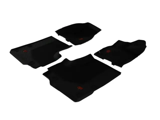 - Description: All-weather Floor Mats are the bucket-style to provide full coverage of carpet in foot well. The kit includes two front row mats and one interlocking second row runner that disconnects for easy removal. The mats are black and made of heavy-duty rubber and feature a red RAM logo. Mats are designed to fit Ram 1500 RHO Crew Cab.