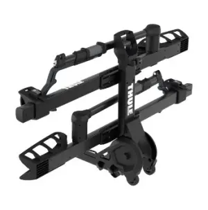 - Description: Thule T2 Pro XTR is a premium bike rack for demanding bike enthusiasts. With time-tested durability and award-winning no frame contact design, this robust bike rack is ready for a wide variety of bike styles, including e-bikes. Integrated wheels help transport the rack to and from the vehicle. Tool-free AutoAttach system makes it quick and easy to install and remove the rack. Versatile design fits nearly all bikes, including e-bikes up to 60 lbs. HitchSwitch lever tilts up when not in use or tilts down for rear vehicle access without removing the rack. Integrated cable lock and lock knobs lock bikes to the rack and the rack to the receiver hitch. Adjustable spacing allows you to mount two bikes without interference. Fits 20-inch to 29-inch wheels and up to 5-inch tires, ideal for road, mountain, fat-tire, and e-bikes. Fits 1.25-inch hitch receiver.